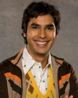 -Kunal Nayyar as Rajesh Koothrapali: Originally from New Delhi, works as a particle astrophysicist. His fmaily is wealthy and communicate via webcam. Very shy around women and is unable to talk to them unless he drinks alcohol or is drunk.